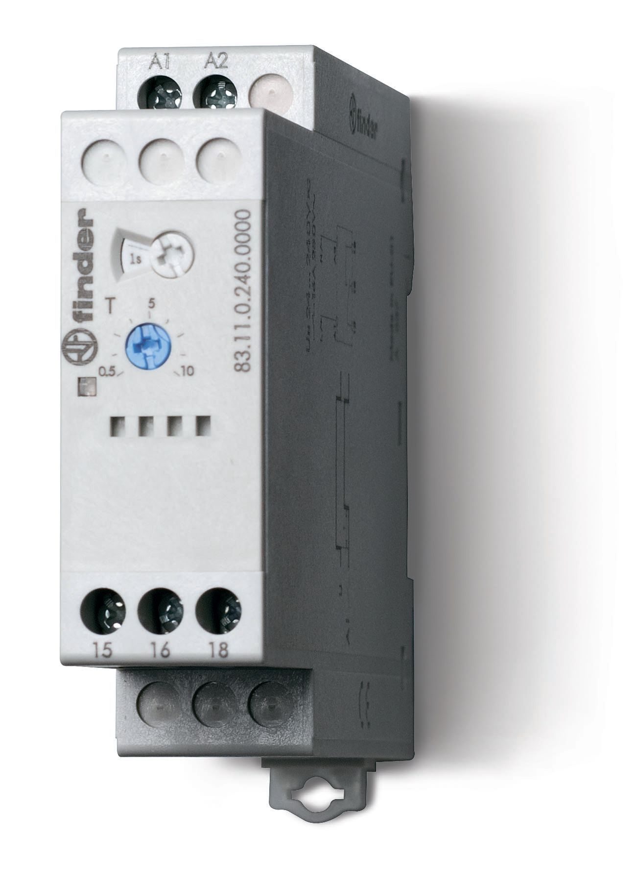 831102400000T, Модульный таймер 1-функциональный (AI); питание 24…240В АС/DC; 1CO 16A; ширина 22.5мм; регулировка времени 0.05с…10дней; степень защиты IP20; версия для ЖД-транспорта