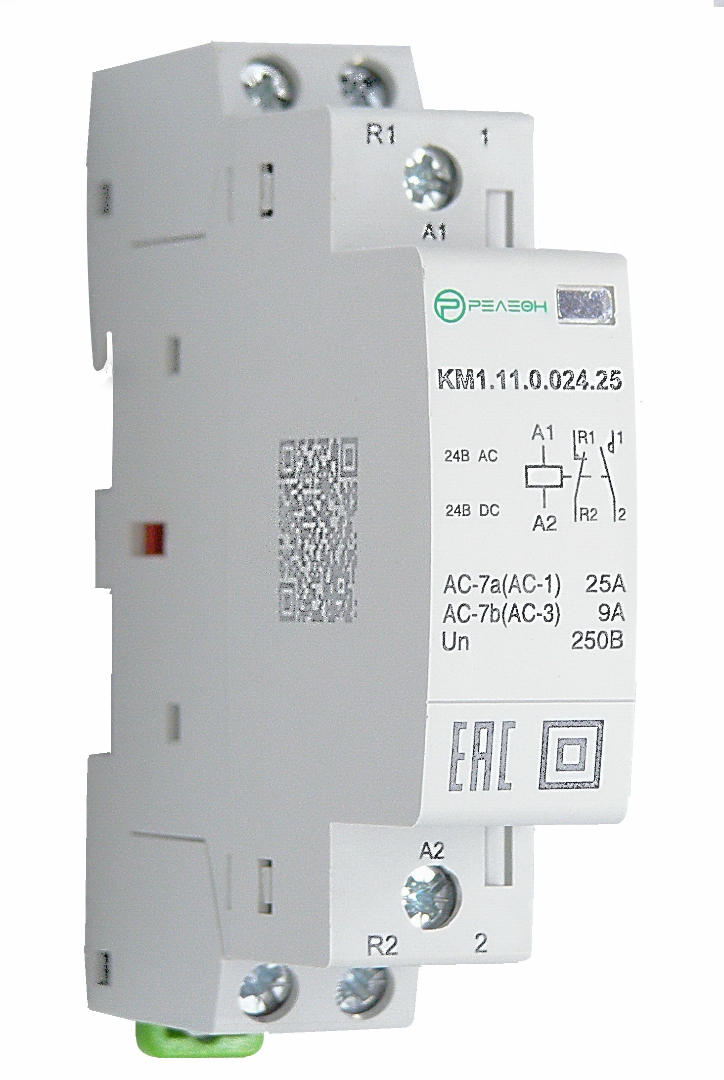 KM111002425, Модульный контактор 1НО + 1 НЗ контакт 25А (~/= 24В AC/DC)