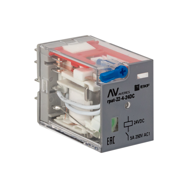 rpat-22-4-24DC, Реле промежуточное с кнопкой и мех. Индикацией RPAt 22/4 5A 24В DC EKF AVERES
