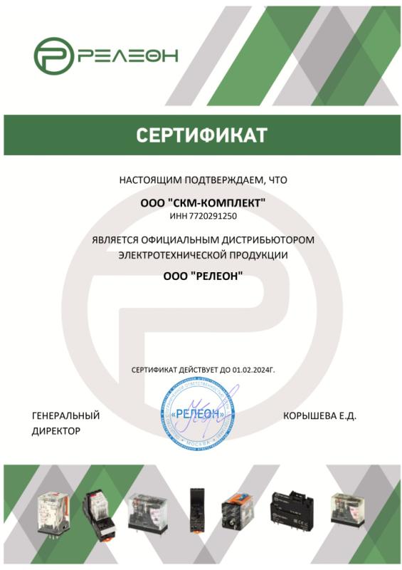 Сертификат подтверждения официального дилерства ООО "РЕЛЕОН"